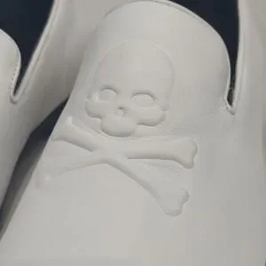 Section X white leather skull crossbone men's dress loafer shoes saint Slip On