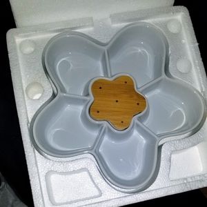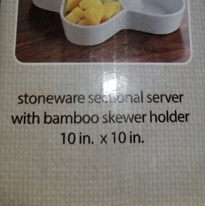 Brand New Sectional Stoneware Server with bamboo skewer holder.