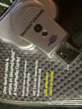 Secure Digital & Multimedia card reader with silver finish. Plug-and-play USB connection for easy file transfer. Compatible with SD and multimedia memory cards. Compact, portable design for on-the-go use.