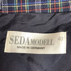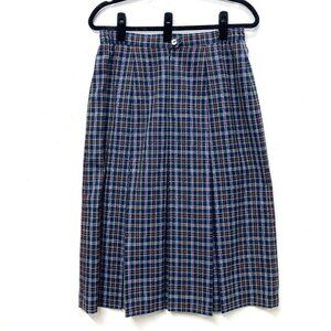 Seda Modell Pleated Midi Skirt, European Size 40, Dark Navy/Black Plaid Lined