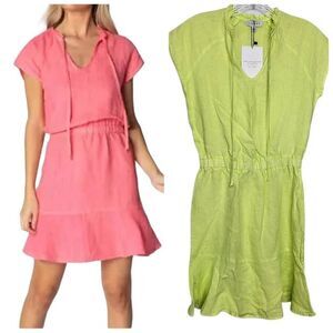 S'edge 100% Linen Raleigh Mini Sundress in Citron Lime Green Size XS