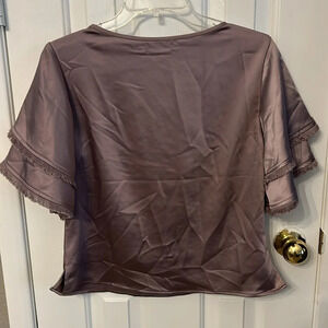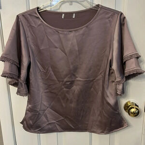 S’edge Purple Women’s (XS) Kelly Satin Top Flutter Sleeves Round Neck NWOT