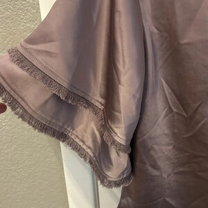 S’edge Purple Women’s (XS) Kelly Satin Top Flutter Frayed Sleeves Round Neck NWOT. Lightweight satin fabric with flutter sleeves with frayed edges. No stretch fabric made with 100% Polyester. Oversized fit.