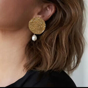 Sedona Retro Pearl Medallion 18K Gold Stainless Steel Waterproof Earrings