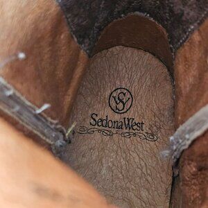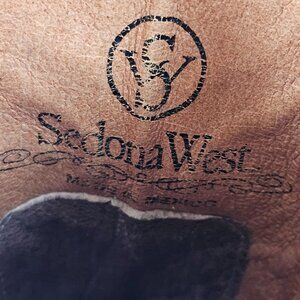 Tags: western boots, python leather, Sedona West, size 6.5D, men's footwear, cowboy style, embroidered pattern, made in Mexico, durable leather, brown beige, exotic material, stylish boots, leather sole, professional