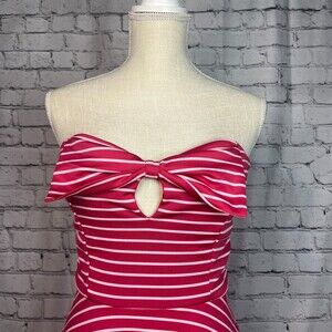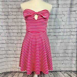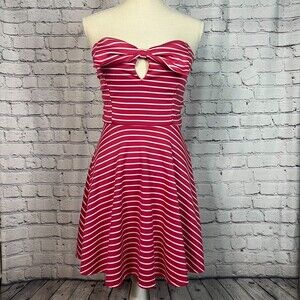 Seduction Red White Striped Strapless Dress Cutout Bust Fit & Flare Large
