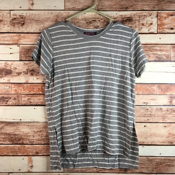 Seductions By Sirens Womens Size M Gray White Striped Rayon Blend Blouse. Good condition.