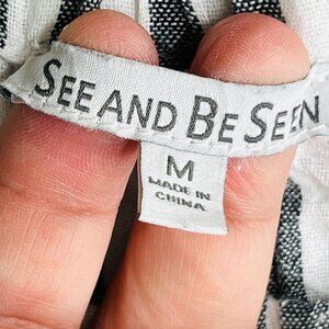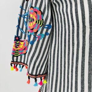 See And Be Seen Black Stripe Blouse Size M Off The Shoulder Embroidery Fringe