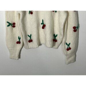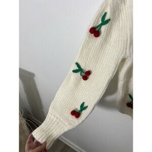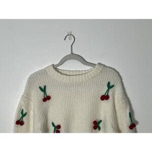 See And Be Seen Cream Ivory Wool Blend Sweater With Cherries Size Medium