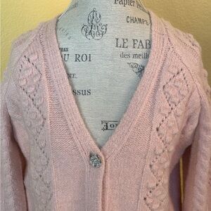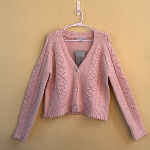 See And Be Seen Pink V-Neck Wool Blend Cable Knit Cardigan Small/Medium NWT