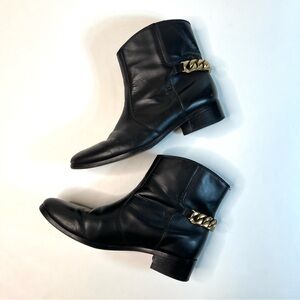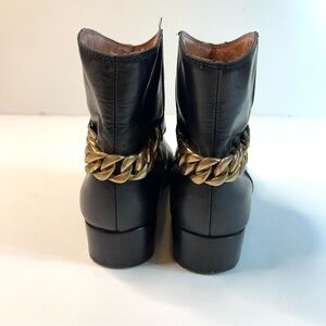 See By Chloe Black Leather Ankle Boots with Gold Chain Size 38