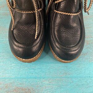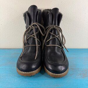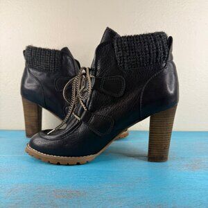 See By Chloe Black Leather Lace-Up Heeled Ankle Boots W/ Knit Cuff Sz 38 US 7.5
