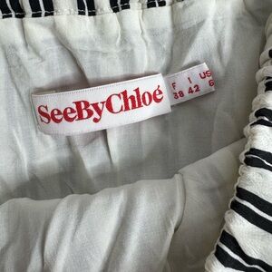 See By Chloe Black White Leopard Striped Silk Mini Dress Sleeveless