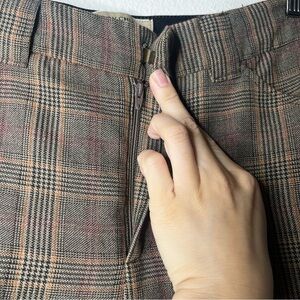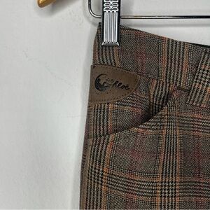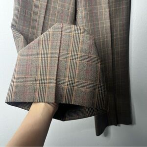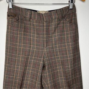 See By Chloe Brown Micro Plaid Wide Leg Flare Pants Trousers