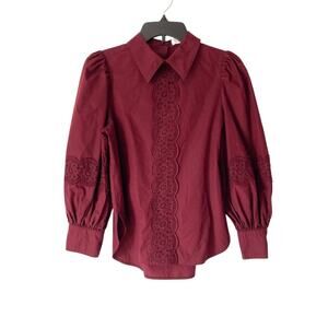 See By Chloe Burgundy Cotton Eyelet Blouse size 36 US 4 Small Obscure Purple
