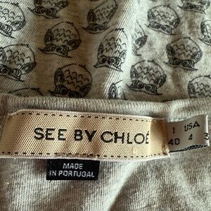 See By Chloe Cotton Long Sleeve Puff Sleeve Printed Tee With Owl Print