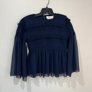 See By Chloe Dark Navy Peasant Top Sheer Sleeves Smocked Bodice Boho Sz 4