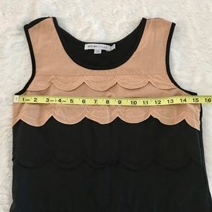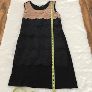 SEE BY CHLOÉ Scalloped sleeveless dress size 2. Black jersey dress with a tiered scalloped black and nude cotton and silk blend overlay at front. See by Chloé dress has a round neck and simply slips on. Fabric1: 70% viscose, 30% cotton; fabric2: 70% cotton, 30% silk. Gently pre-owned condition.