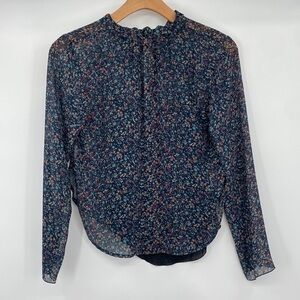 See By Chloe Floral Haze Blouse Womens 34/ US 2 Black Purple Viscose Sheer Top