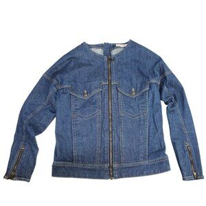 See By Chloe Front Back Zipper Detailing Blue Wash Denim Jacket Size 2