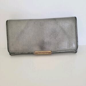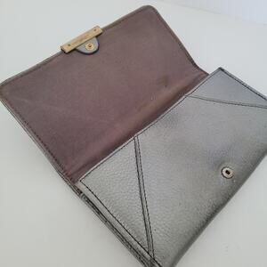 See By Chloe Geniue Pebble Leather Long Wallet Metalic Silver Envelope Designer