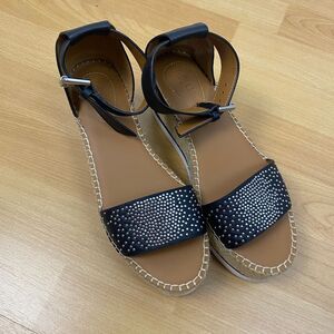Glyn espadrille sandal in calfskin featuring the See By Chloé logo on the sole and back of shoe. The original jute sole is reinforced with a micro outsole for durability and sporty contrast while the adjustable buckle allows for the perfect fit.