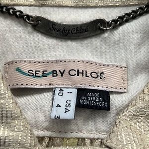 See By Chloe Gold Metallic Crop Blazer Jacket Size 4
