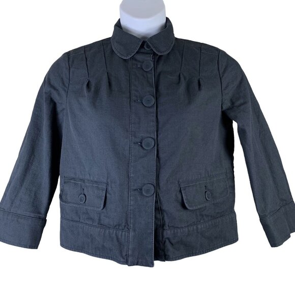 See By Chloe Jacket Size Small Navy Blue Button Up Cropped Pockets 3/4 Sleeve