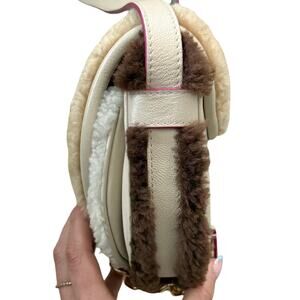 See By Chloe Mara Shearling Sherpa Leather Brown Cement Beige Small Saddle Bag