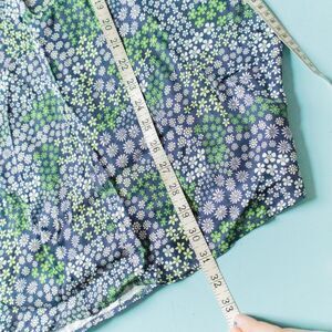 Features: Navy blue base with multicolored floral print shift fit mini dress.