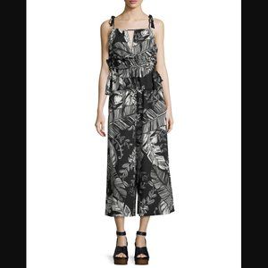 See By Chloe Monochrome Tropical Palm Print Shoulder Tie Ruffle Sleeveless Top