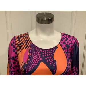 See By Chloe Purple, Orange & Navy Geometric Print 100% Silk Shirt, Size 6 (US)