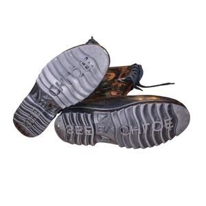 Pre owned condition. There is a lot of scratching on inside edge of the boots