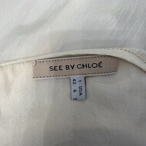 See By Chloe Silk Blend Blouse Scalloped Hem Size 6 Color Block