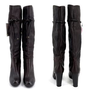 See By Chloe Tall Leather Boots Chocolate Brown Wool Lined High Heeled Size 37.5