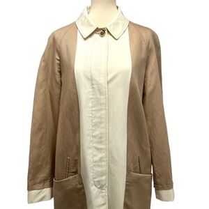 See By Chloe Tan & Cream Natural Flax Cotton Button Front Casual Jacket Coat 12