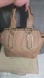 Chic tan satchel with gold hardware. Stylish and versatile design.