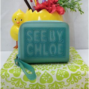 See By Chloe Turquoise Zip Around Credit Cards Bifold Square Wallet