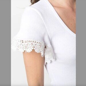 See By Chloe White Scoop Neck Lace Trim Sleeve Ribbed Top Size Small