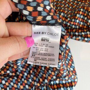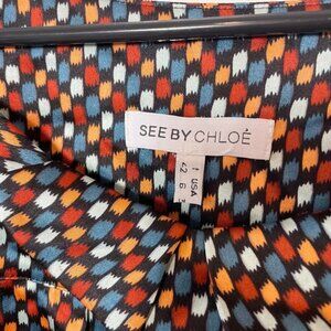 See By Chloe Womens 100% Silk Geometric Blouse Multicolor 6 3/4 Sleeve Pleated