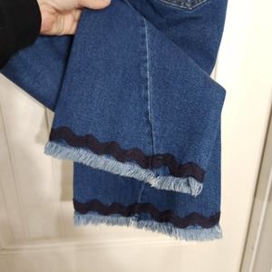 Style: Mid Rise / Cropped / Kick Flare / Twisted Seam / Raw Hem / Scalloped Trim