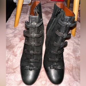 See By Chloe black leather bow front leather block heel booties ankle boot 37.5