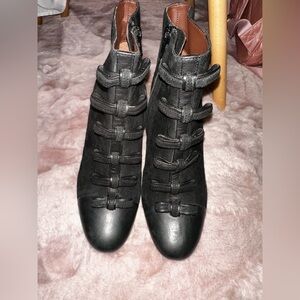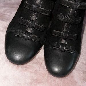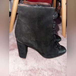 black leather bow front suede leather block heel booties ankle boot