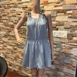 Elegant soft blue mini dress with gathered details. Ideal for stylish outings. Excellent condition.
