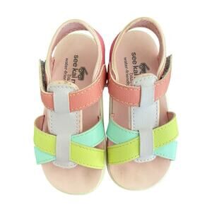 The See Kai Run Basics Child Gladiator Kids Sandals in Yellow/Pink, size 9, are perfect for your little one this summer. With a hook and loop closure for easy on and off, these sandals feature an open toe design and medium width for all-day comfort. Made of 100% polyester, these stylish sandals are ideal for both boys and girls, making them a versatile and durable option for your toddler's active lifestyle.