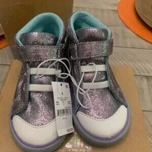 Belmont high-top sneaker featuring a silver sparkling metallic textile upper and an enhanced rubber outsole with superior traction. Great for active kids, shoes offer comfort and style for all-day play.