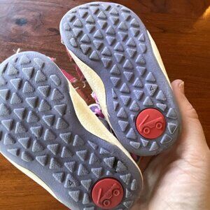 These See Kai Run sandals combine durability and style, featuring a metallic pink and gold design. The adjustable hook & loop straps ensure a secure and comfortable fit.