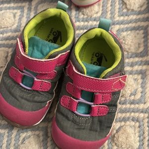Durable and comfortable Velcro shoes for active toddlers. Very good used condition and great for outdoor play!