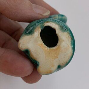 These little piggies are adorable. One in sage green and one on turquoise blue with a slight crackle glaze. Each little piggie stands about 2-1/4" high.