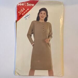See & Sew 5184 Pattern Dress Miss 18 Vintage Sheath Loose Pullover Midi Boxy